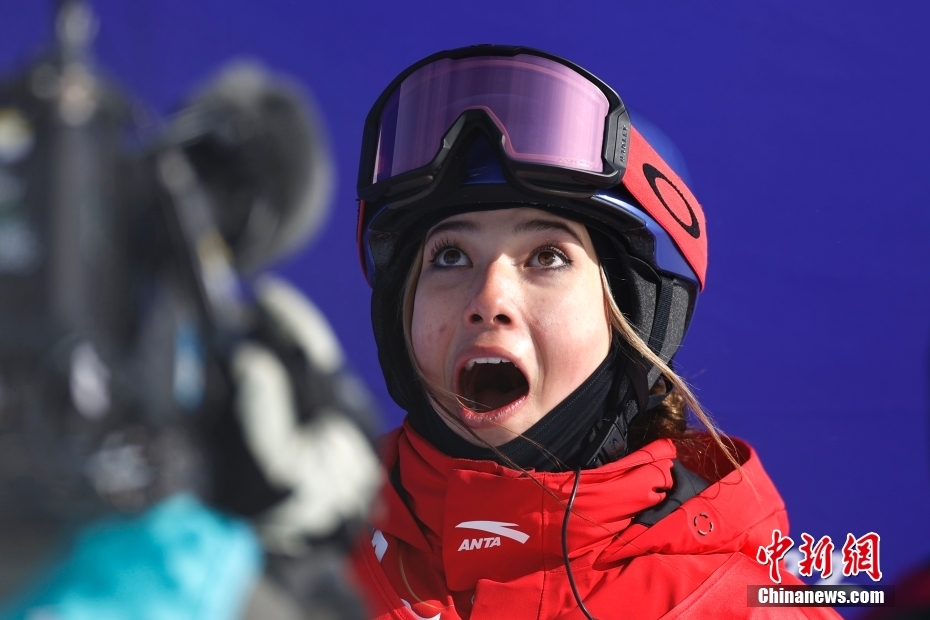2月18日,中國隊選手谷愛凌在比賽后。當日,北京2022年冬奧會自由式滑雪女子U型場地技巧決賽在張家口云頂滑雪公園舉行。中國隊選手谷愛凌奪得此項目金牌。 中新社記者 富田 攝