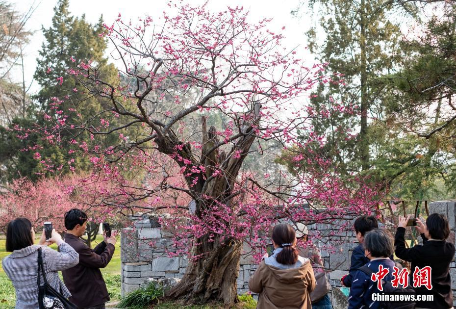 3月2日,南京玄武湖公園內(nèi)一株明代古梅迎春盛開。據(jù)了解,這株古梅已經(jīng)600多歲,歷經(jīng)風吹雨打,至今仍然年年開花。 中新社記者 泱波 攝