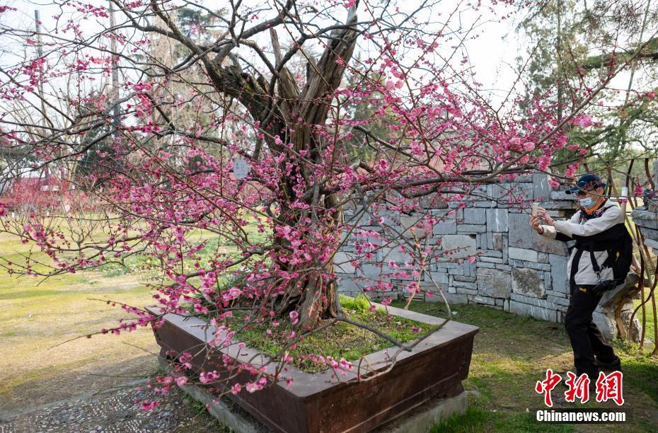 3月2日,南京玄武湖公園內(nèi)一株明代古梅迎春盛開。據(jù)了解,這株古梅已經(jīng)600多歲,歷經(jīng)風吹雨打,至今仍然年年開花。 中新社記者 泱波 攝