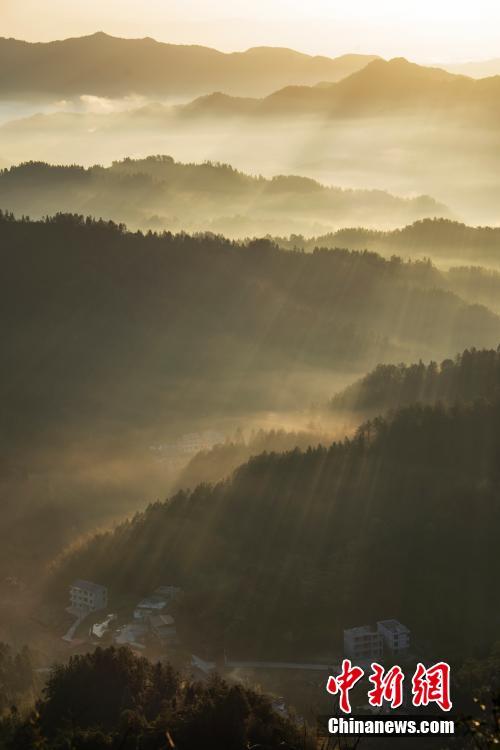 3月9日,江西省遂川縣佛祖仙嶺遠(yuǎn)眺,群山起伏,陽(yáng)光照在林間,形成一道道光芒,風(fēng)景如畫。中新社發(fā) 肖遠(yuǎn)泮 攝 圖片來(lái)源:CNSphoto