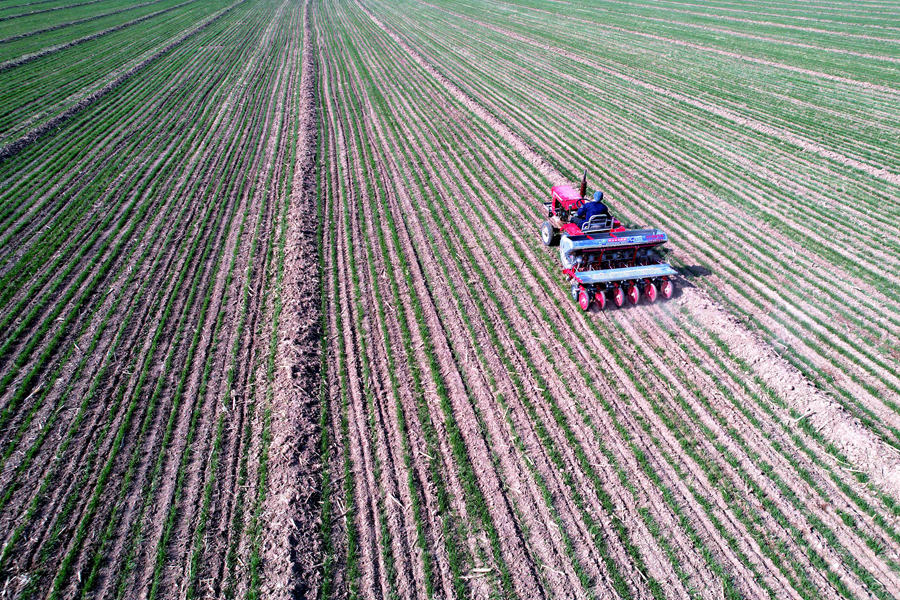 3月23日,山東濟(jì)南章丘區(qū)黃河街道,臂展20余米的自走式打藥車正在黃河岸邊的麥田里噴灑除草劑。隨著氣溫回暖,山東各地農(nóng)民正緊張地組織春耕春管,黃河岸邊的麥田里一片繁忙。(無人機(jī)拍攝)