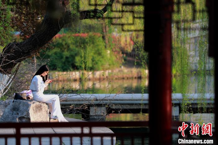 4月1日,山東濟(jì)南,大明湖畔垂柳發(fā)芽、鮮花怒放,吸引眾多游客踏青賞花。梁犇 攝