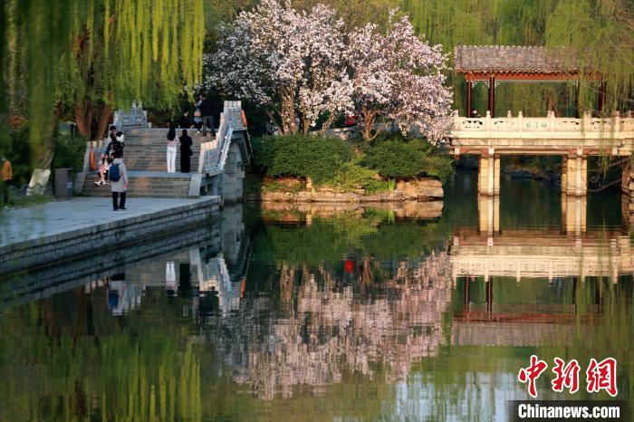 4月1日,山東濟南,大明湖畔垂柳發(fā)芽、鮮花怒放,吸引眾多游客踏青賞花 梁犇 攝