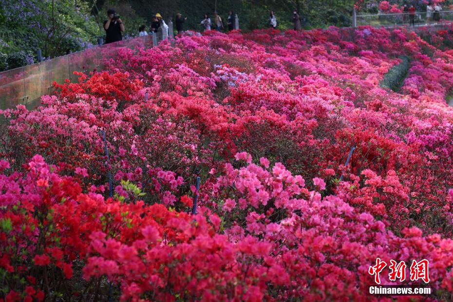 色彩艷麗“紅似火” 南京明城墻下杜鵑花盛放(4)