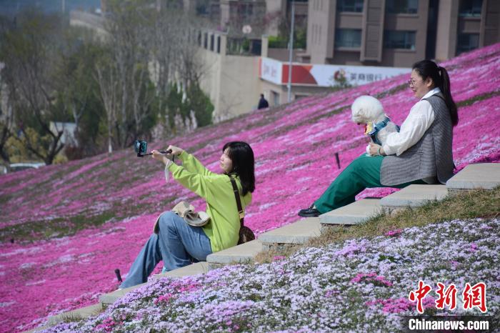 4月7日,在濟南市歷下區(qū)龍鼎大道南首,映入眼簾的紅粉色花海分外吸睛,不少游人特來此拍照打卡,記錄美麗瞬間。