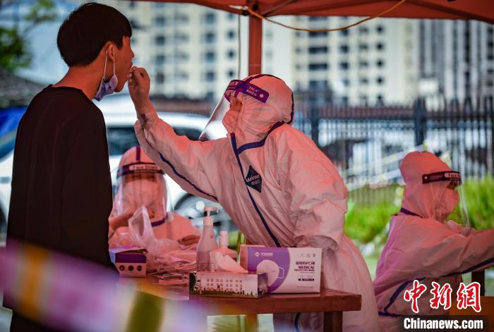 “大白”們給民眾做核酸采樣。 阮傳龍 攝