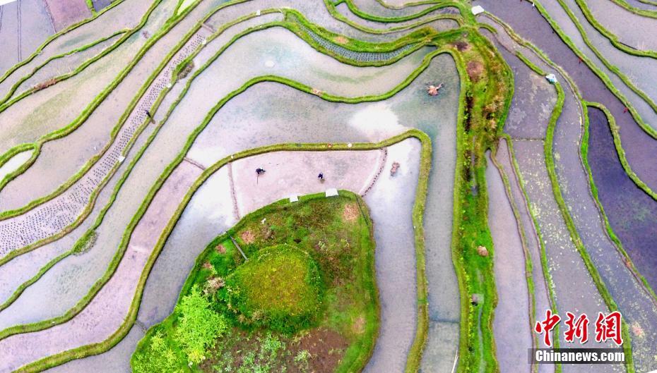4月16日,村民在貴州省黔東南苗族侗族自治州從江縣翠里鄉(xiāng)岑豐村梯田移栽秧苗。“谷雨”節(jié)氣將至,貴州省黔東南苗族侗族自治州從江縣農民搶抓農時進行春耕春種,梯田里到處是人們忙碌的身影(無人機航拍)。 中新社發(fā) 龍夢前 攝 圖片來源:CNSphoto