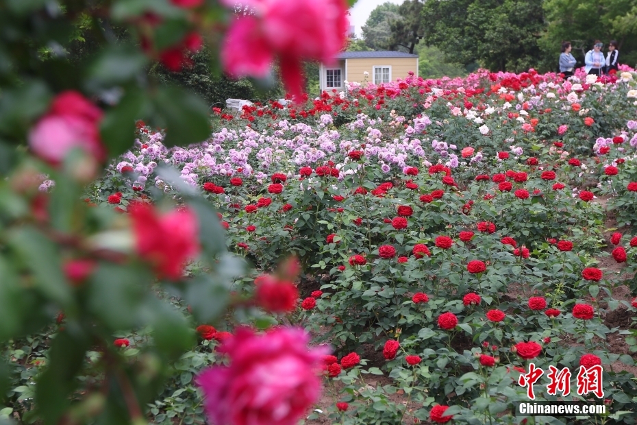 4月27日,江蘇南京玄武湖畔月季花盛開(kāi),花團(tuán)錦簇引客來(lái)。圖為市民前來(lái)欣賞月季花。中新社記者 泱波 攝