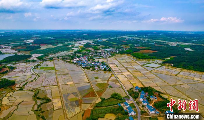 航拍江西五彩鄉(xiāng)村春色 水滿田疇田園如畫(4)