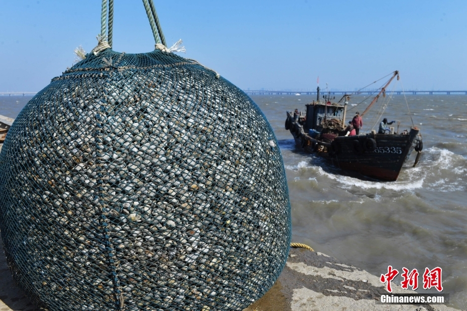 5月4日,山東青島,一艘滿載蛤蜊的漁船準(zhǔn)備靠岸。隨著伏季“休漁期”開(kāi)始,人工養(yǎng)殖貝類捕撈作業(yè)在養(yǎng)殖區(qū)內(nèi)加緊捕撈收獲,滿足市場(chǎng)鮮貨需求。 中新社發(fā) 王海濱 攝
