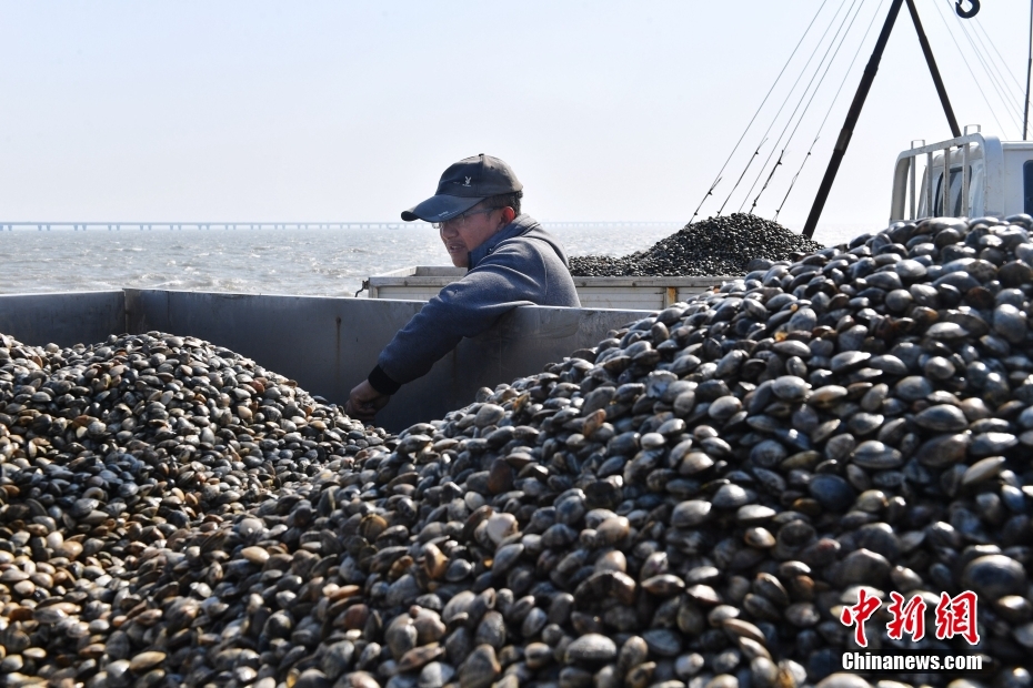 5月4日,山東青島,游客在碼頭上觀看裝運(yùn)的蛤蜊。隨著伏季“休漁期”開始,人工養(yǎng)殖貝類捕撈作業(yè)在養(yǎng)殖區(qū)內(nèi)加緊捕撈收獲,滿足市場鮮貨需求。 中新社發(fā) 王海濱 攝
