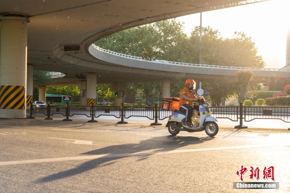 5月4日,河南鄭州“靜態(tài)管理”首日,路上人少、車(chē)少,外賣(mài)小哥忙配送。中新社記者 李超慶 攝