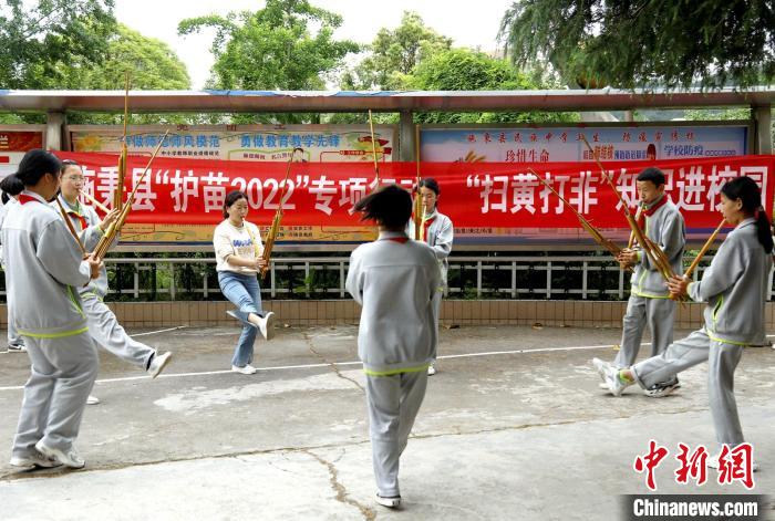 圖為苗族蘆笙社團(tuán)的學(xué)生們練習(xí)“踩蘆笙”!》盍 攝