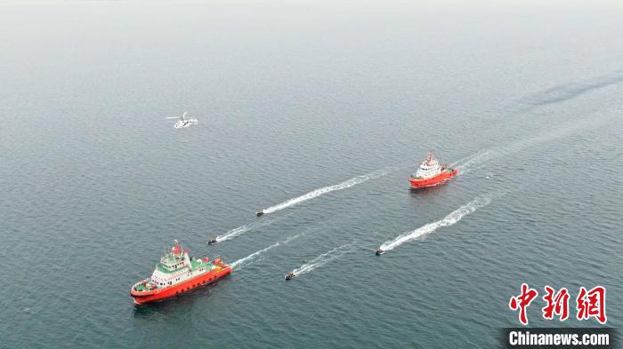 山東青島消防救援支隊開展實戰(zhàn)化海上救援,模擬一艘行駛中的漁船起火,數(shù)名船員落水,一人下落不明。接警后,兩艘消防船、四艘救援艇、一架消防直升機前往事發(fā)海域?qū)嵤┤藛T營救和火災(zāi)撲救任務(wù)!⊥跻欢 攝