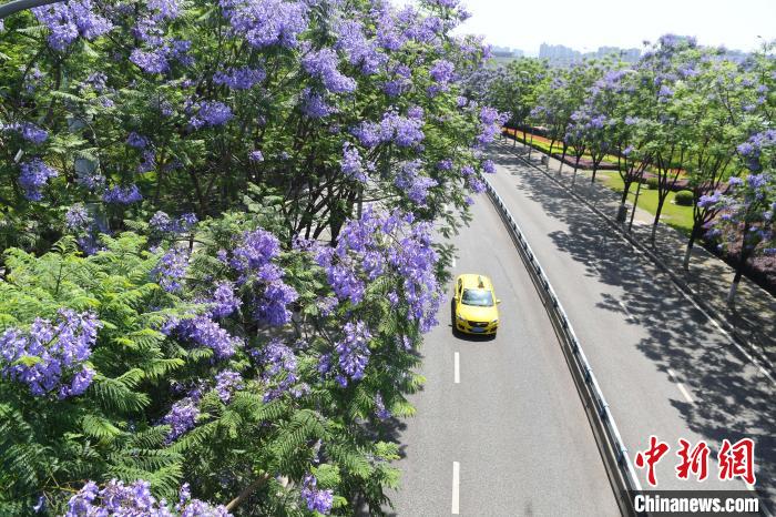 重慶街頭藍(lán)花楹迎盛開期 藍(lán)紫色的花朵顯得格外艷麗(7)