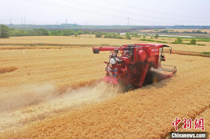 5月25日,“三夏”時(shí)節(jié),在安徽省合肥市蜀山區(qū)小廟鎮(zhèn),2.6萬(wàn)畝小麥已經(jīng)成熟,農(nóng)民搶抓晴好有利天氣收割小麥,一臺(tái)臺(tái)收割機(jī)在麥田里往返穿梭,確保顆粒歸倉(cāng)。