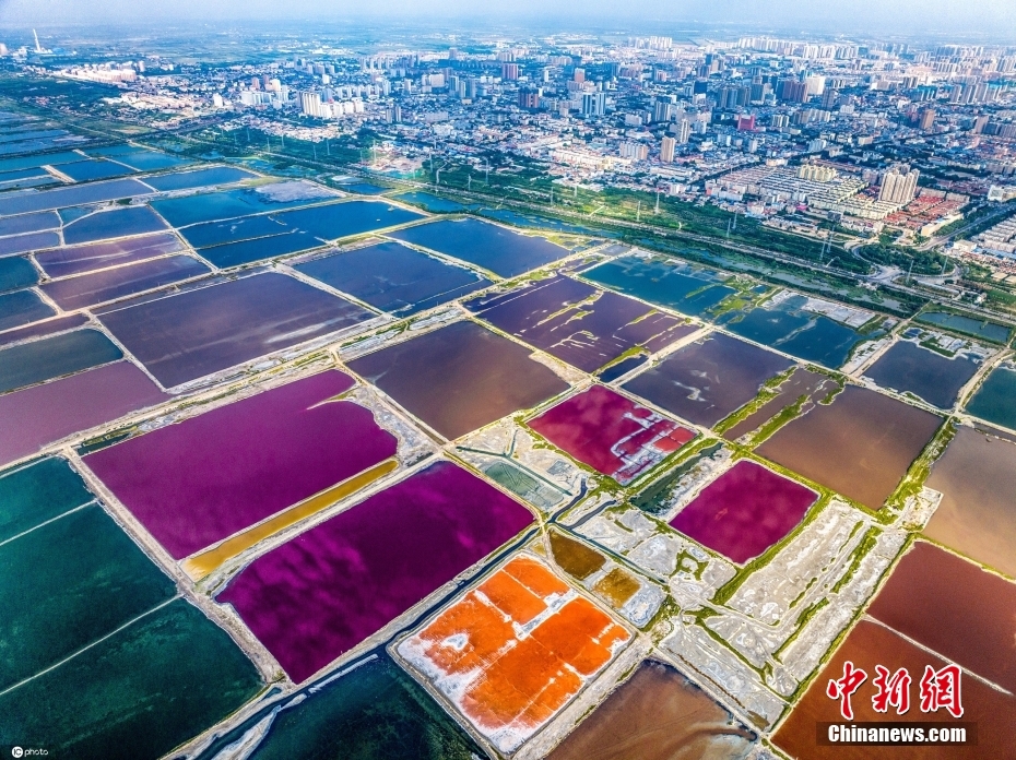 山西運(yùn)城七彩鹽湖斑斕多姿 俯瞰宛如巨型調(diào)色板(2)