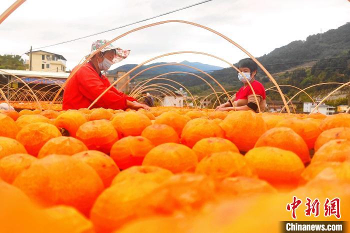 深秋時節(jié),柿果飄香,柿餅成為永定區(qū)秋色美景中最靚麗的元素。