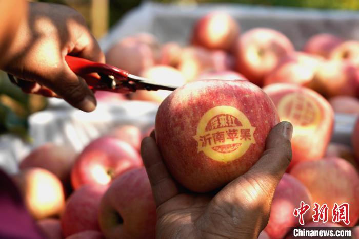 10月27日,游客在山東省臨沂市沂南縣成千果蔬種植專業(yè)合作社果園內(nèi)采摘蘋果。位于浮來山腳下的山東省臨沂市沂南縣湖頭鎮(zhèn),種植蘋果有60多年的歷史。近年來,該鎮(zhèn)推廣“水肥一體化”等新技術(shù)種植蘋果,并推出“印字蘋果”等花色品種,多措并舉推動蘋果產(chǎn)業(yè)高質(zhì)量發(fā)展,全鎮(zhèn)4000余畝蘋果成為農(nóng)民搖錢樹。