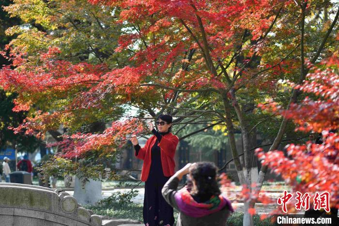 11月17日,初冬時(shí)節(jié),青島中山公園內(nèi)紅葉繽紛、色彩絢麗,紅葉、銀杏等進(jìn)入最佳觀賞期,吸引眾多游客前來(lái)打卡拍照,留住最美時(shí)光。