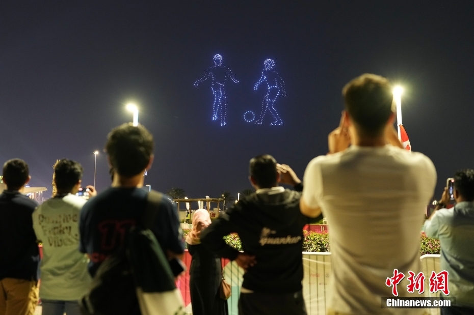 當?shù)貢r間11月20日晚,卡塔爾世界杯在多哈開幕,一場煙花燈光秀在球迷廣場附近天空上演。中新社記者 崔楠 攝