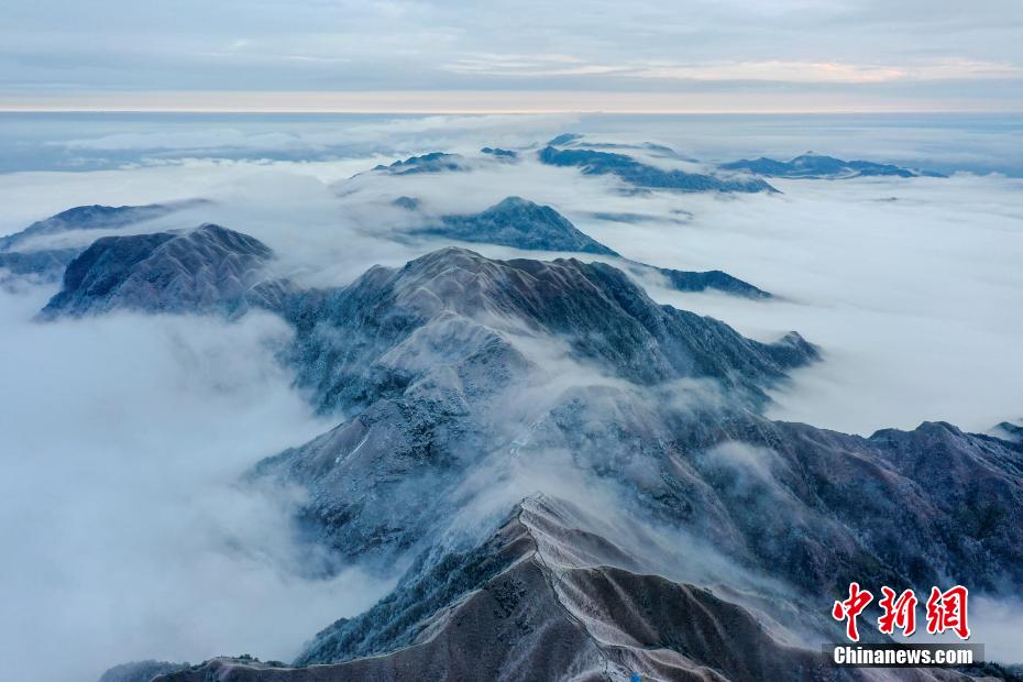 12月2日,江西武功山雪后初霽,連綿不絕的高山草甸銀裝素裹,云海如波浪一般翻涌,群山若隱若現(xiàn),宛若一幅壯美水墨畫卷。 楊思旭 攝