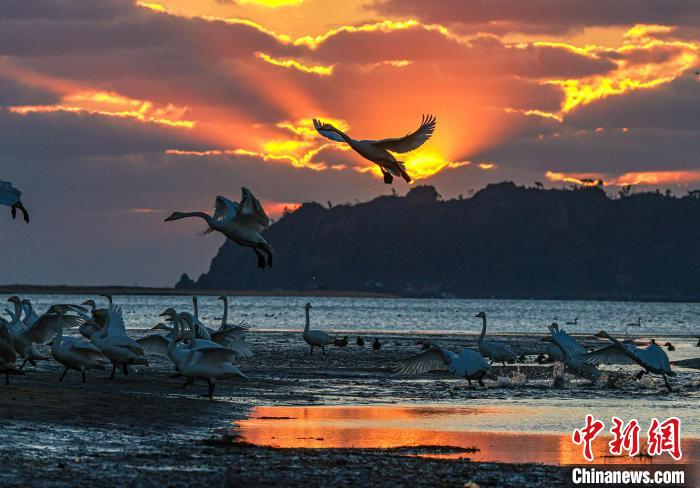 山東榮成:彩霞與天鵝齊飛(5)