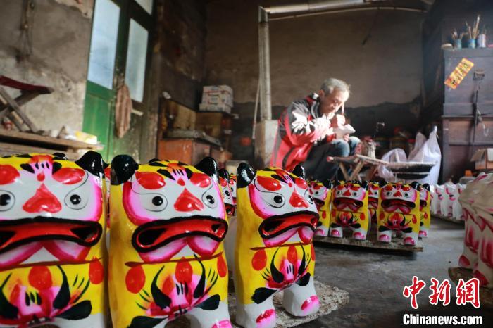 2022年12月12日,山東省高密市聶家莊村民張清先正在家中制作“泥叫虎”!±詈 攝