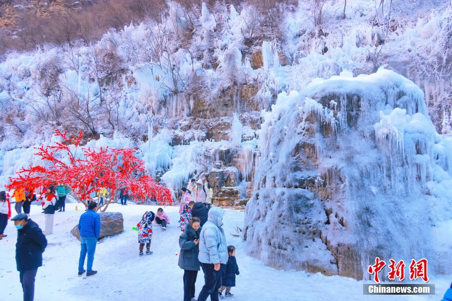 河南焦作:峭壁冰瀑景觀引游人(2)