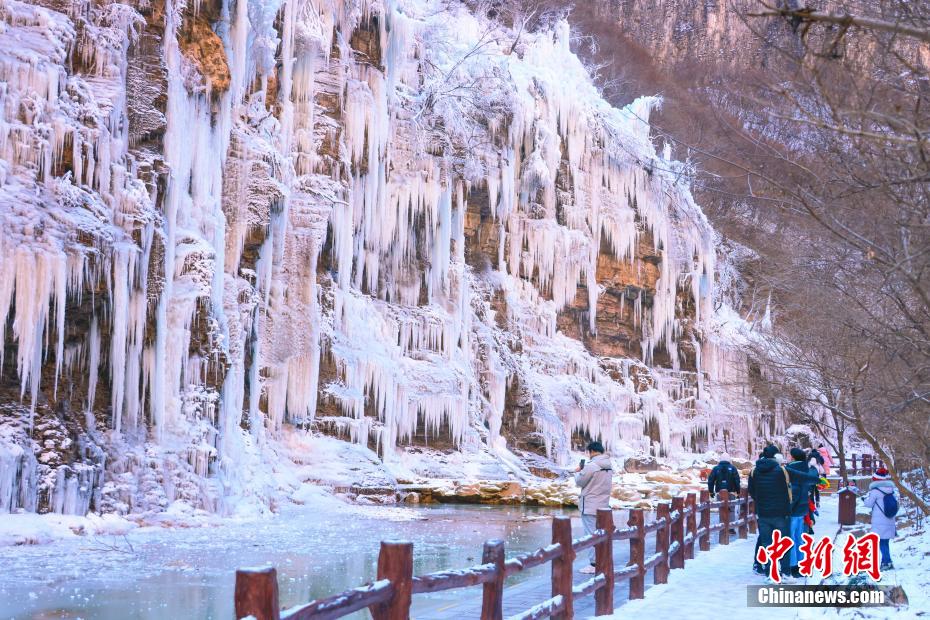河南焦作:峭壁冰瀑景觀引游人(4)