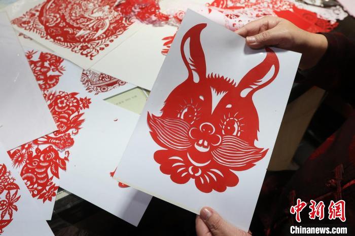 南京非遺傳承人創(chuàng)作兔年剪紙作品迎新春(4)