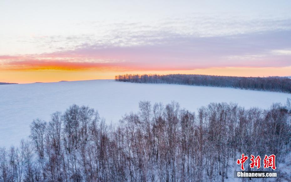 隆冬時(shí)節(jié),位于我國(guó)最北部的內(nèi)蒙古大興安嶺正處于一年中白晝最短的時(shí)節(jié),每天下午三四點(diǎn)鐘,太陽(yáng)便開始西沉,而皎潔的月亮悄然升起,在這里?梢娙赵峦x。雪原上,晚霞與月光將銀色的大地淺摹成一幅水墨丹青畫卷。
