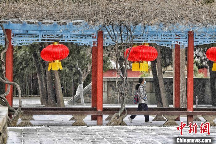 山東泰安,游客走過岱廟掛滿燈籠的連廊。 陳陽 攝