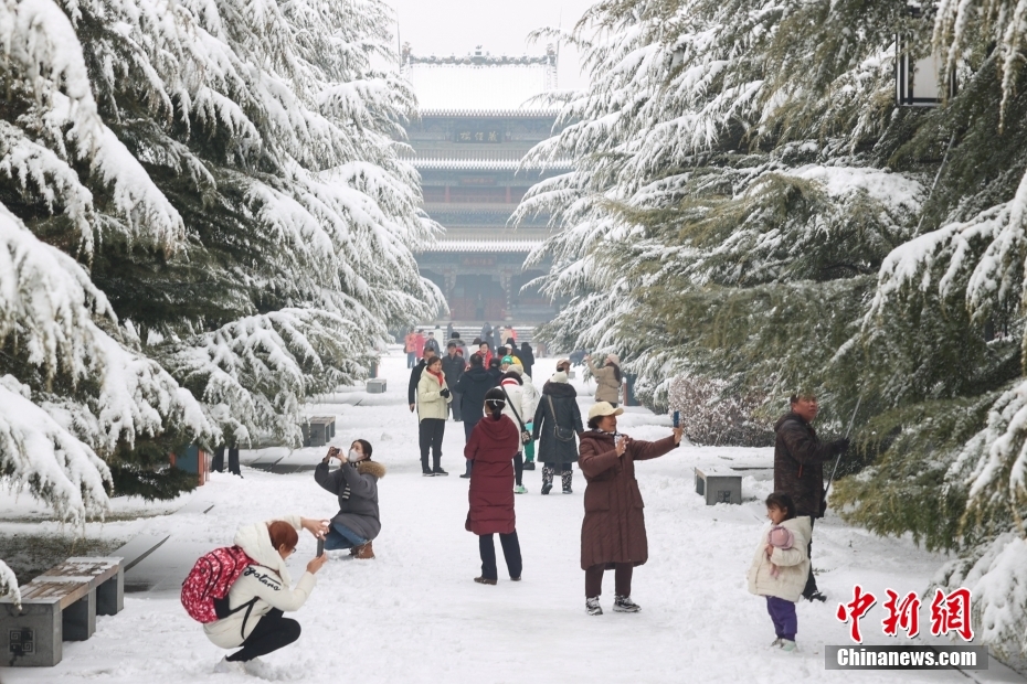 2月9日,山西太原迎澤公園,市民欣賞雪景。當日,太原市迎來強降雪天氣。武俊杰 攝