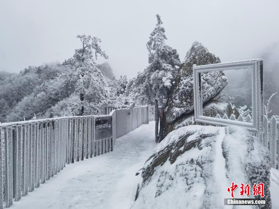 2月13日,河南南陽(yáng)老界嶺出現(xiàn)大面積霧凇自然景觀。放眼望去,潔白晶瑩的霜花掛滿枝頭,玉樹瓊枝,美景如畫。圖為老界嶺霧凇景觀。張寧波 攝