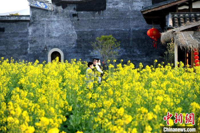 2月21日,福州梁厝特色歷史文化街區(qū)的油菜花盛開,金黃色的花海與周圍的古厝建筑構(gòu)成了一幅恬靜美麗的春日畫卷,吸引游人前來打卡。呂明 攝