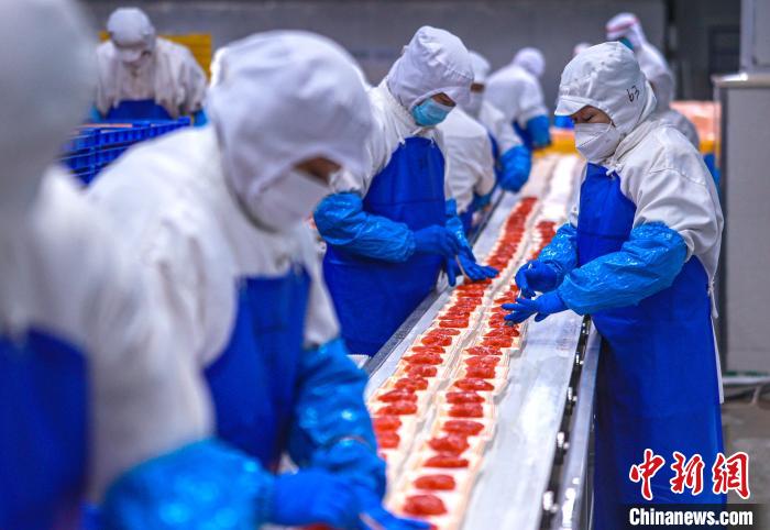 工人們加工魚肉制品,趕制出口訂單。 李信君 攝