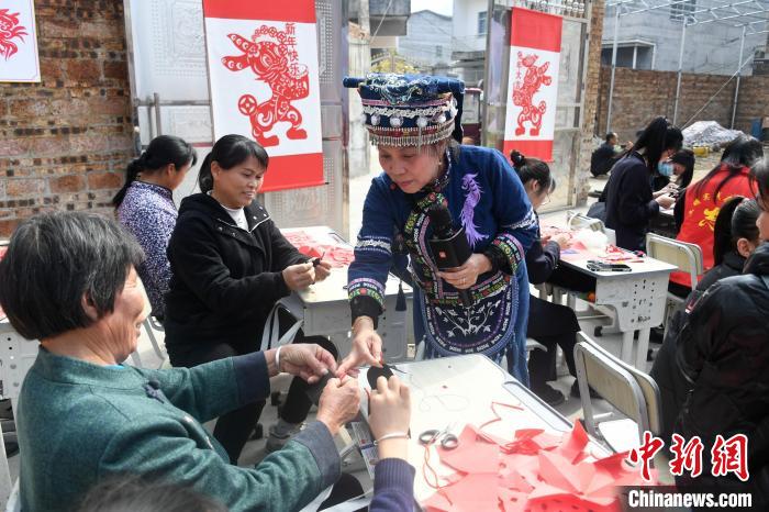 廣西羅城仫佬山鄉(xiāng)婦女學(xué)剪紙迎“三八”節(jié)(3)
