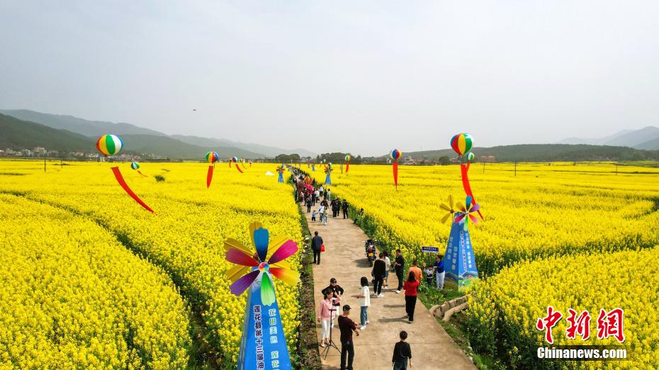 3月12日,走進江西萍鄉(xiāng)蓮花縣路口鎮(zhèn)湖塘古村,只見連片的金色油菜花競相綻放,春景正美。當日,主題為“花田美色,蓮花等你”的蓮花縣第十三屆油菜花節(jié)在此開幕,眾多游客慕名前來賞花觀景,踏春游玩,共赴一場春天的約會。今年蓮花縣油菜種植面積18.7萬畝,三月的鄉(xiāng)村到處呈現(xiàn)出“人在花中,村在景中”的美麗景觀。圖為游客在油菜花海中游玩。賀治斌 攝