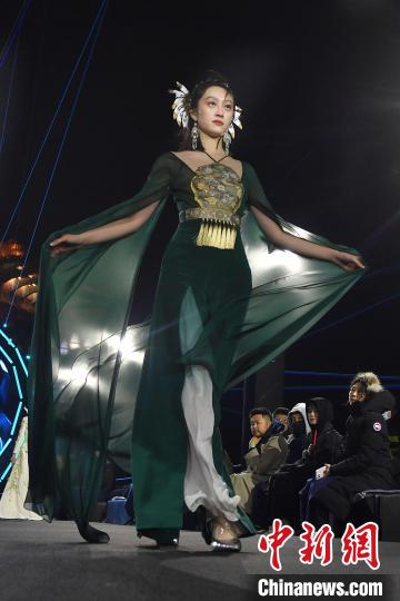 一名模特在進行走秀。 王海濱 攝