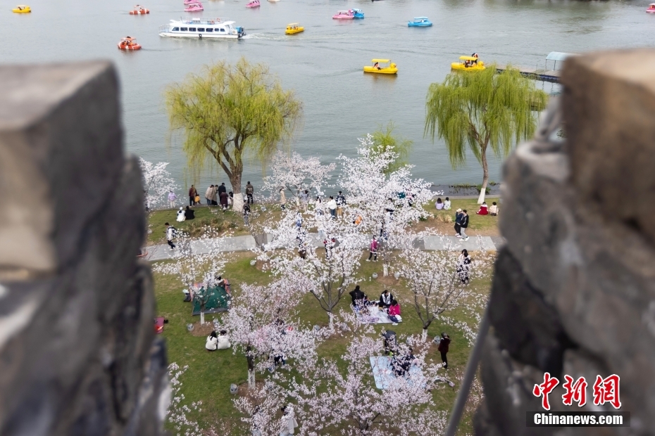 3月19日,江蘇南京,明城墻解放門內(nèi)外的櫻花盛開(kāi),吸引眾多游人前來(lái),踏青游玩盡享春光。中新社記者 泱波 攝
