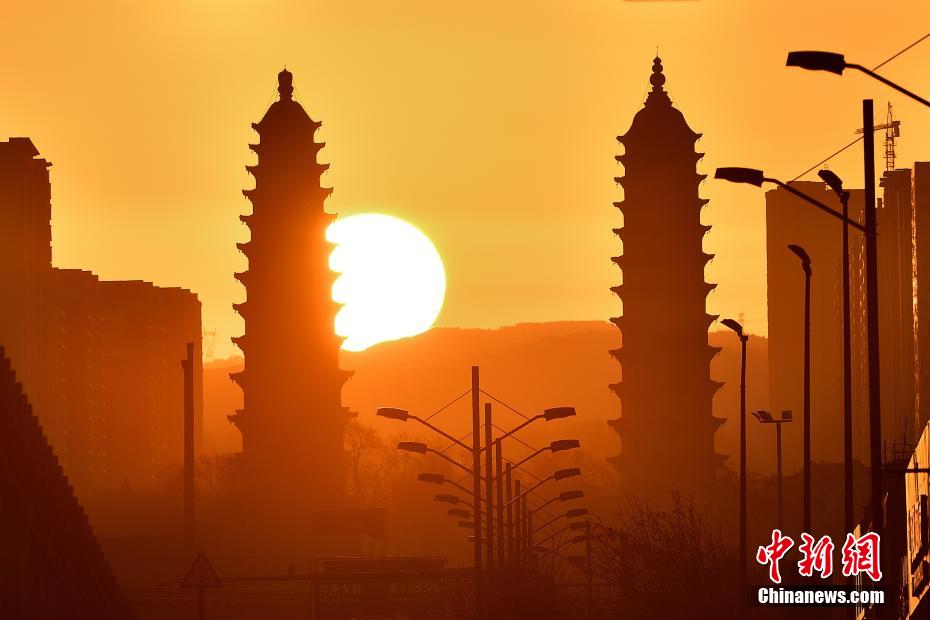 太原清晨現(xiàn)“雙塔懸日”景觀(3)