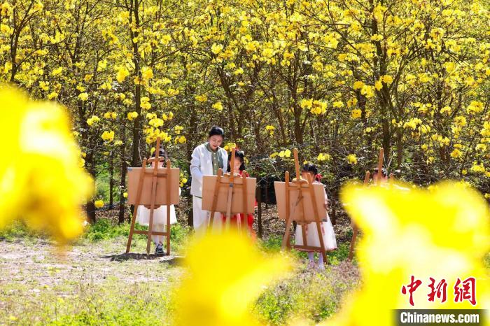 日前,乘著春日的暖陽(yáng),四川省瀘州市龍馬潭區(qū)雙加學(xué)校的美術(shù)教師帶領(lǐng)小朋友們?cè)谑㈤_的黃花風(fēng)鈴林內(nèi)進(jìn)行戶外寫生,描繪美麗春光。楊尚威 攝