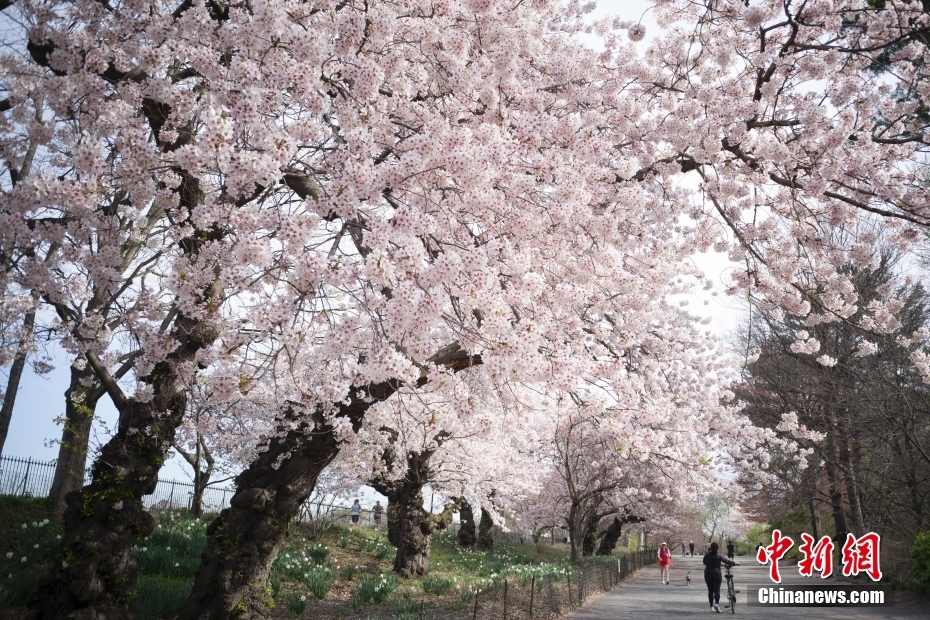 當(dāng)?shù)貢r(shí)間4月11日,紐約中央公園水庫(kù)東側(cè)的櫻花盛開,許多民眾來(lái)這條步道晨跑,賞花、鍛煉兩不誤。中新社記者 廖攀 攝