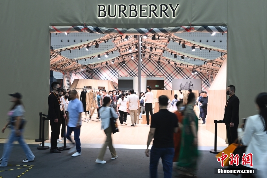 4月12日,海南海口,觀眾在第三屆中國國際消費(fèi)品博覽會(huì)博柏利展區(qū)參觀購物。中新社記者 田雨昊 攝