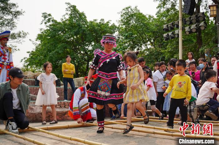 廣西“壯族三月三”:游客共跳“竹竿舞”(3)