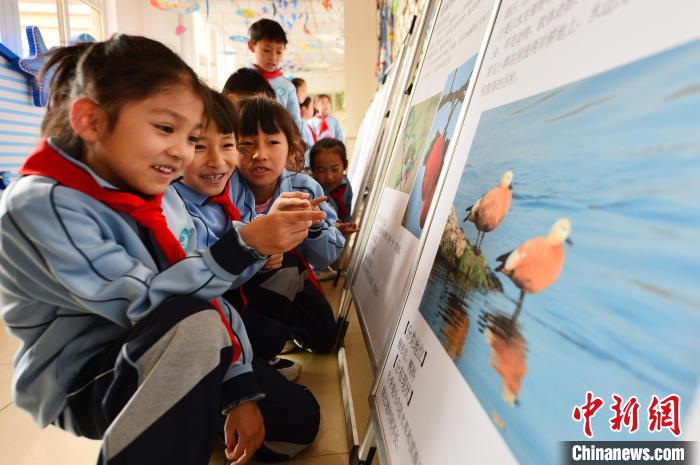 學(xué)生觀看鳥類保護(hù)宣傳展!⊥鹾I 攝
