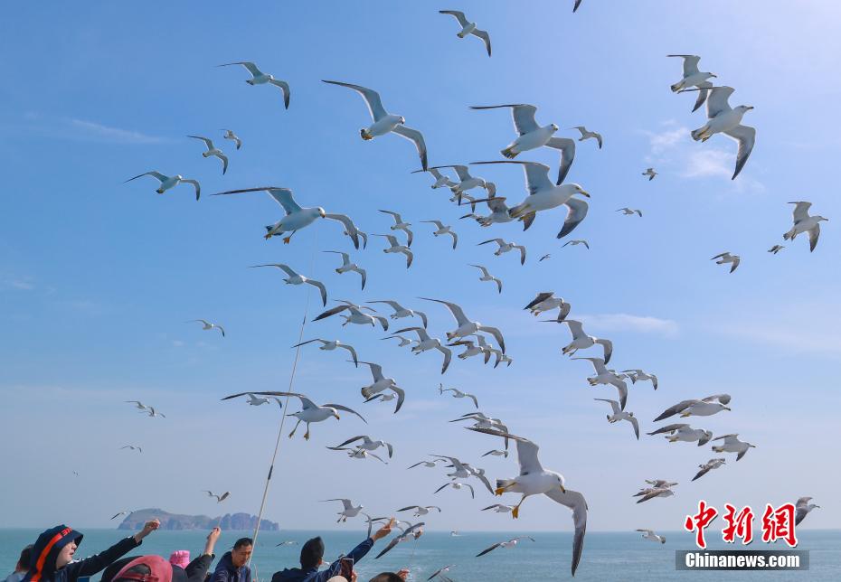 黑尾鷗伴隨著游輪上下翻飛、翩翩起舞。李信君 攝