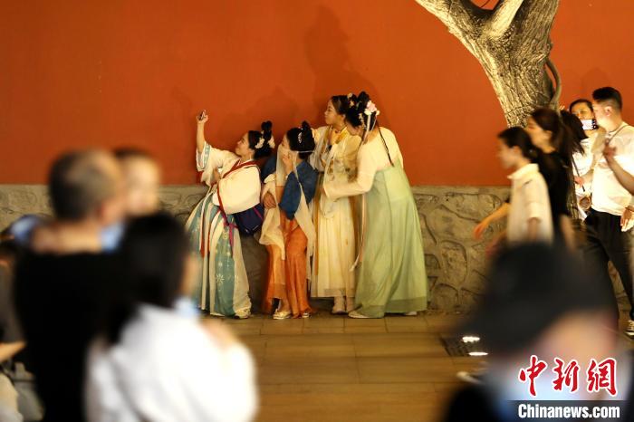 圖為游客穿著漢服在大雁塔景區(qū)拍照留影!堖h(yuǎn) 攝