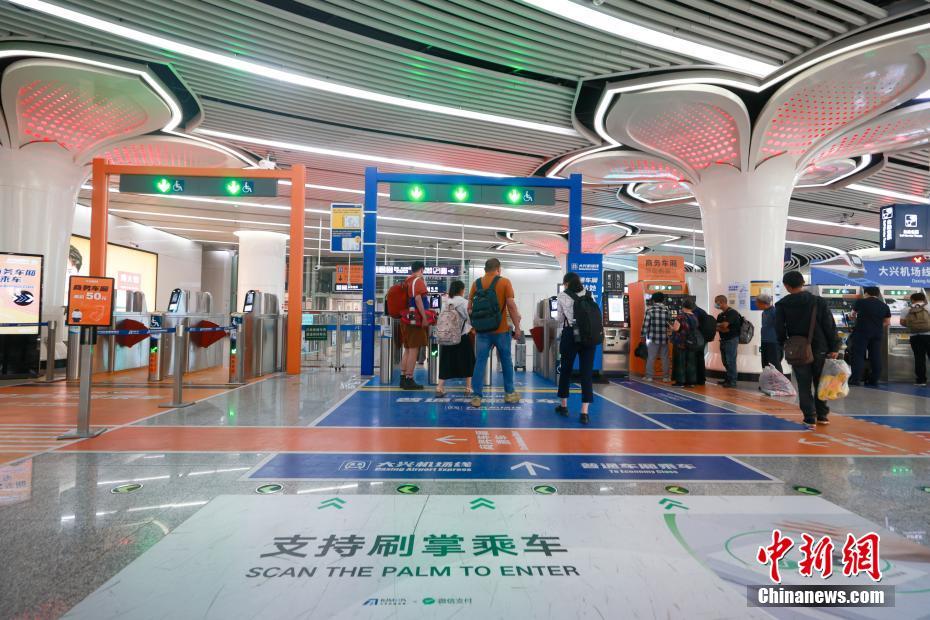 5月24日,北京地鐵大興機(jī)場(chǎng)線,進(jìn)站閘機(jī)前貼有“支持刷掌乘車”的提示。北京地鐵大興機(jī)場(chǎng)線“刷掌”乘車服務(wù)于近日正式上線。乘客通過(guò)注冊(cè)開(kāi)通“刷掌”乘車服務(wù)后,即可在該條地鐵線路“刷掌”過(guò)閘乘車。中新社記者 賈天勇 攝